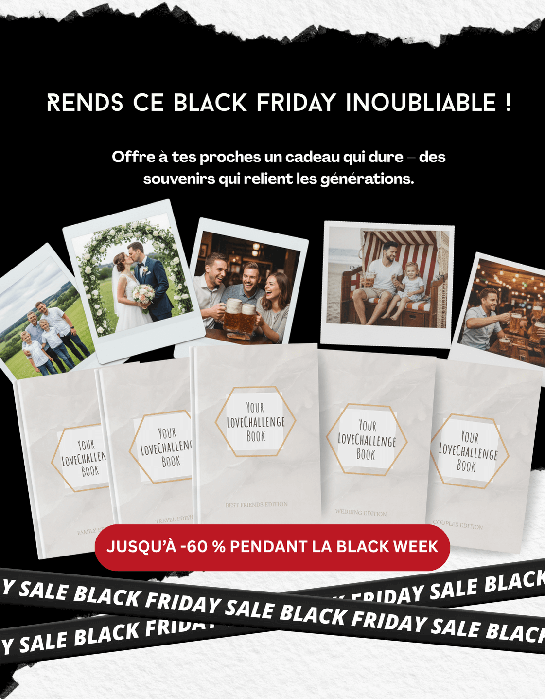 Bienvenue chez YourLoveChallenge ! Evelin et Daniel, les fondateurs, vous proposent de vivre des moments inoubliables – la recette secrète pour des relations interpersonnelles enrichissantes. Nos livres proposent une multitude de défis pour les couples, les amis, les familles et les voyageurs, afin de renforcer chaque relation et de vivre de nouvelles expériences. Découvrez ensemble de nouveaux horizons et créez votre livre de souvenirs 💖